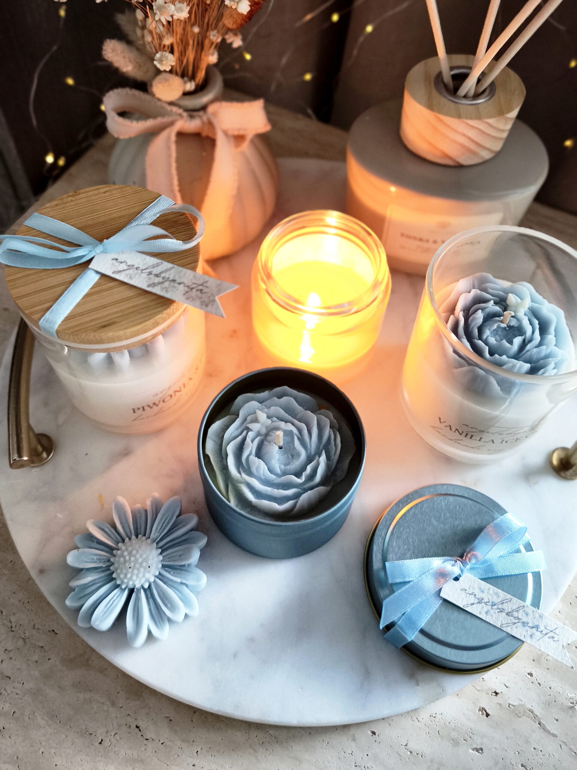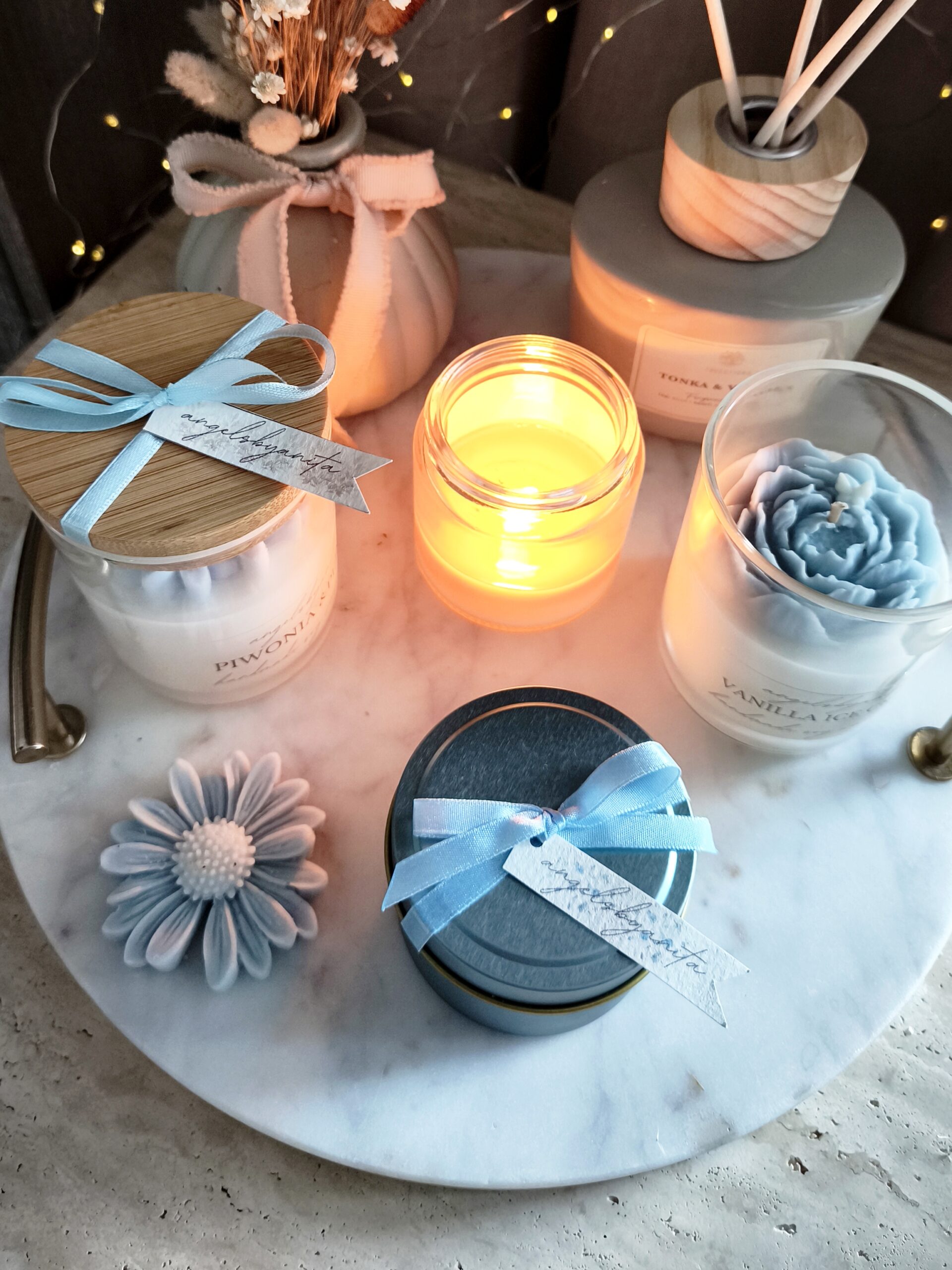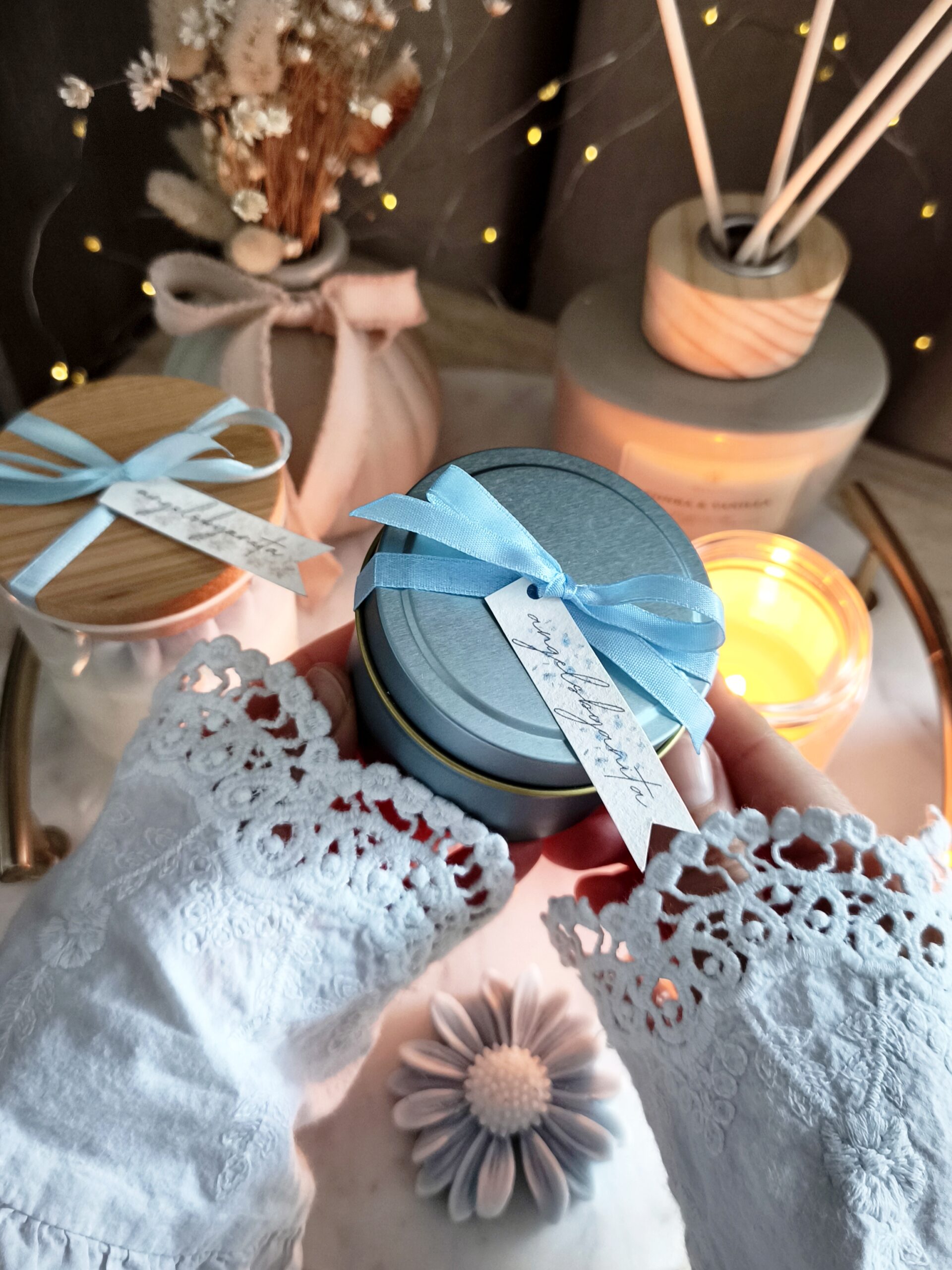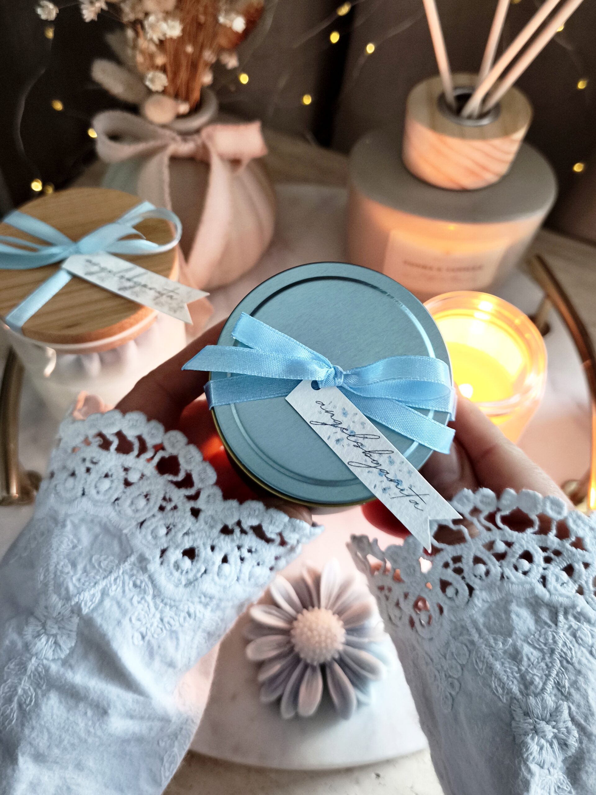 Świeca w niebieskiej puszce od angelsbyanita będzie idealnym prezentem z okazji urodzin, imienin, Dnia Babci, Dnia Kobiet, ale również jako forma podziękowań dla gości za przybycie na naszą wyjątkową uroczystość taką jak np. Chrzest Święty, Komunia Święta czy Ślub. Wybierając świecę z opcją pakowania na prezent nadaje się ona od razu do wręczenia.